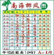 “南海椰风”第1423期推荐版局规律,本期千位16走三步.
