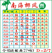 “南海椰风”第1428期推荐版局规律,本期个位27走三步.