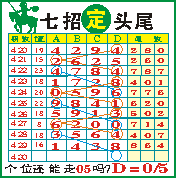“七招定头尾”第1430期推荐版局规律,本期主攻05个位走第五步.