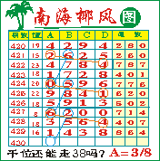 “南海椰风”第1430期推荐版局规律,本期千位38走三步.
