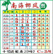 “南海椰风”第1439期推荐版局规律,本期十位38走三步.