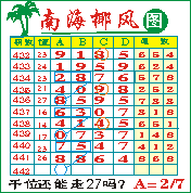 “南海椰风”第1442期推荐版局规律,本期千位27走三步.