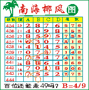 “南海椰风”第1444期推荐版局规律,本期百位49走三步.