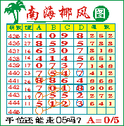 “南海椰风”第1445期推荐版局规律,本期千位05走三步.