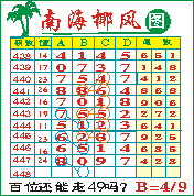 “南海椰风”第1448期推荐版局规律,本期百位49走三步.