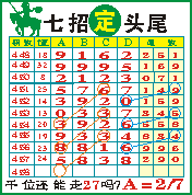 “七招定头尾”第1458期推荐版局规律,本期主攻27千位走第五步.