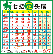 “七招定头尾”第1465期推荐版局规律,本期主攻27千位走第六步.