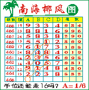 “南海椰风”第1465期推荐版局规律,本期千位16走三步.