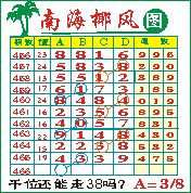 “南海椰风”第1466期推荐版局规律,本期千位38走三步.