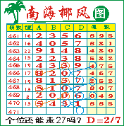 “南海椰风”第1454期推荐版局规律,本期个位27走三步.