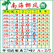 “南海椰风”第1473期推荐版局规律,本期千位27走三步.