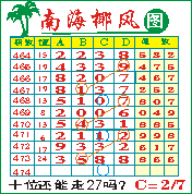 “南海椰风”第1474期推荐版局规律,本期十位27走三步.