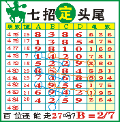 “七招定头尾”第1485期推荐版局规律,本期主攻27百位走第五步.