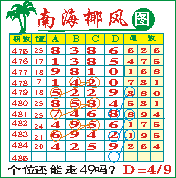 “南海椰风”第1485期推荐版局规律,本期个位49走三步.
