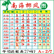 “南海椰风”第1488期推荐版局规律,本期千位27走三步.