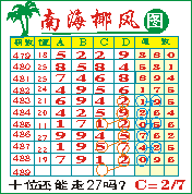 “南海椰风”第1489期推荐版局规律,本期十位27走三步.