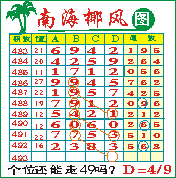“南海椰风”第1493期推荐版局规律,本期个位49走三步.