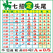 “七招定头尾”第1498期推荐版局规律,本期主攻05千位走第五步.