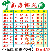 “南海椰风”第1498期推荐版局规律,本期个位49走三步.