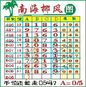 “南海椰风”第1506期推荐版局规律,本期千位05走三步.