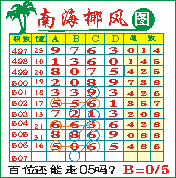 “南海椰风”第1507期推荐版局规律,本期百位05走三步.