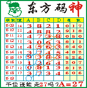 “东方码神”第1519期推荐此隔板规律,本期千位站“27”走第三步.