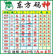 “东方码神”第1526期推荐此隔板规律,本期千位站“34”走第三步.