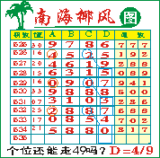 “南海椰风”第1535期推荐版局规律,本期个位49走三步.