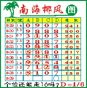 “南海椰风”第1539期推荐版局规律,本期个位16走三步.