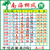 “南海椰风”第1569期推荐版局规律,本期千位46走三步.