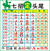 “七招定头尾”第1573期推荐版局规律,本期主攻05千位走第五步.