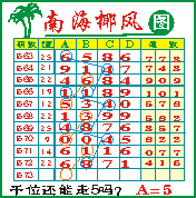 “南海椰风”第1573期推荐版局规律,本期千位58走三步.