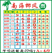 “南海椰风”第1574期推荐版局规律,本期千位14走三步.
