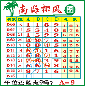 “南海椰风”第1576期推荐版局规律,本期千位59走三步.