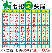 七招定头尾”第1582期推荐版局规律,本期主攻05千位走第四步.