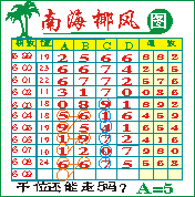 “南海椰风”第1609期推荐版局规律,本期千位25走三步.