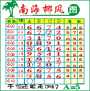 “南海椰风”第1610期推荐版局规律,本期千位57走三步.