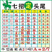 七招定头尾”第1624期推荐版局规律,本期主攻27千位走第五步.
