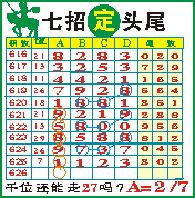 七招定头尾”第1626期推荐版局规律,本期主攻27千位走第四步.