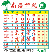 “南海椰风”第1629期推荐版局规律,本期千位14走三步.