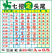 2,《七招定头尾》专栏命中主攻38头配27054尾.