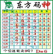 “东方码神”第1637期推荐此隔板规律,本期个位站“6”走第三步.