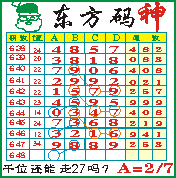 “东方码神”第1648期推荐此隔板规律,本期千位站“27”走第三步.