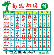 “南海椰风”第1651期推荐版局规律,本期千位23走三步.