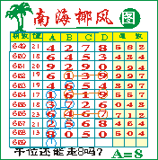 “南海椰风”第1659期推荐版局规律,本期千位68走三步.