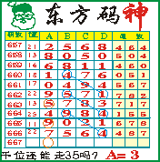 “东方码神”第1667期推荐此隔板规律,本期千位站“35”走第三步.