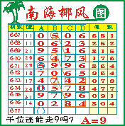 “南海椰风”第1677期推荐版局规律,本期千位89走三步.