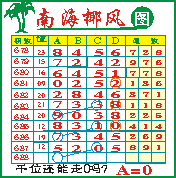 “南海椰风”第1688期推荐版局规律,本期千位04走三步.