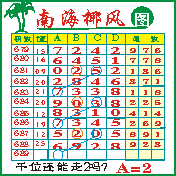 “南海椰风”第1689期推荐版局规律,本期千位12走三步.