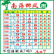 “南海椰风”第1694期推荐版局规律,本期千位06走三步.